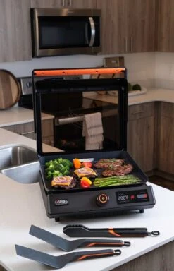 - Blackstone’s first electric griddle for indoor and outdoor cooking.