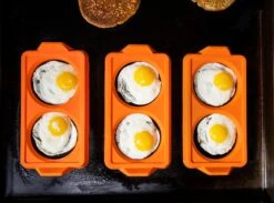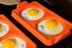 - Two 4-inch egg rings in a tray – perfect for making breakfast for your whole family all at once