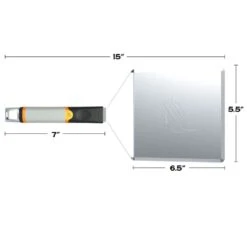 - The spatula is made of durable stainless steel with beveled edges perfect for smashing burgers