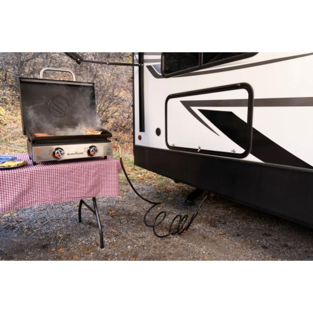 No need to pack extra propane when you purchase the RV Propane Quick Connect. With 15 feet of hose you will be able to cook all your meals next to your RV! Designed to fit the 17″ and 22″ griddles.