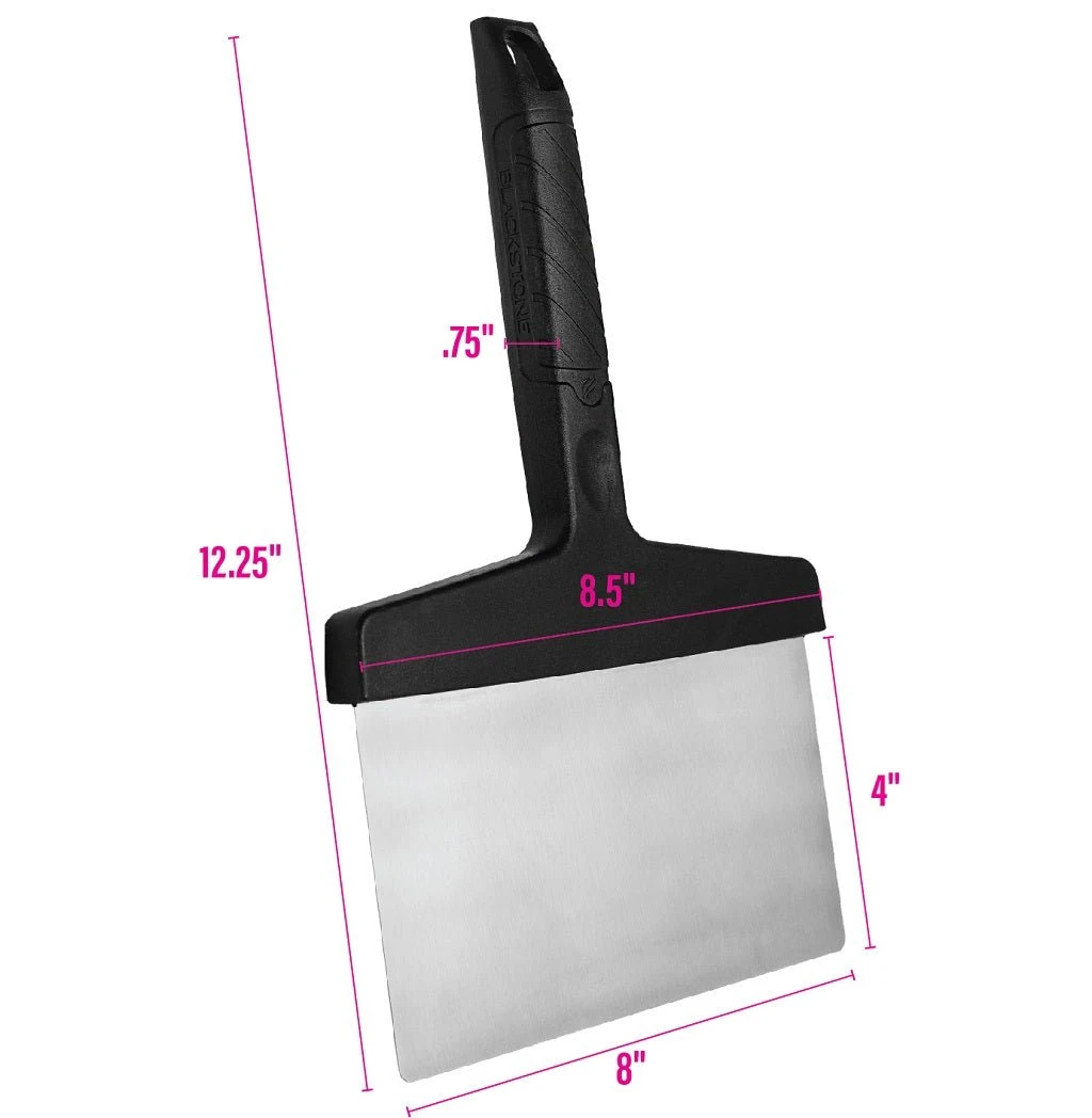 - Scraper is 8.5″ wide, .75″ deep and 12.25″ tall, blade is 8″ by 4″